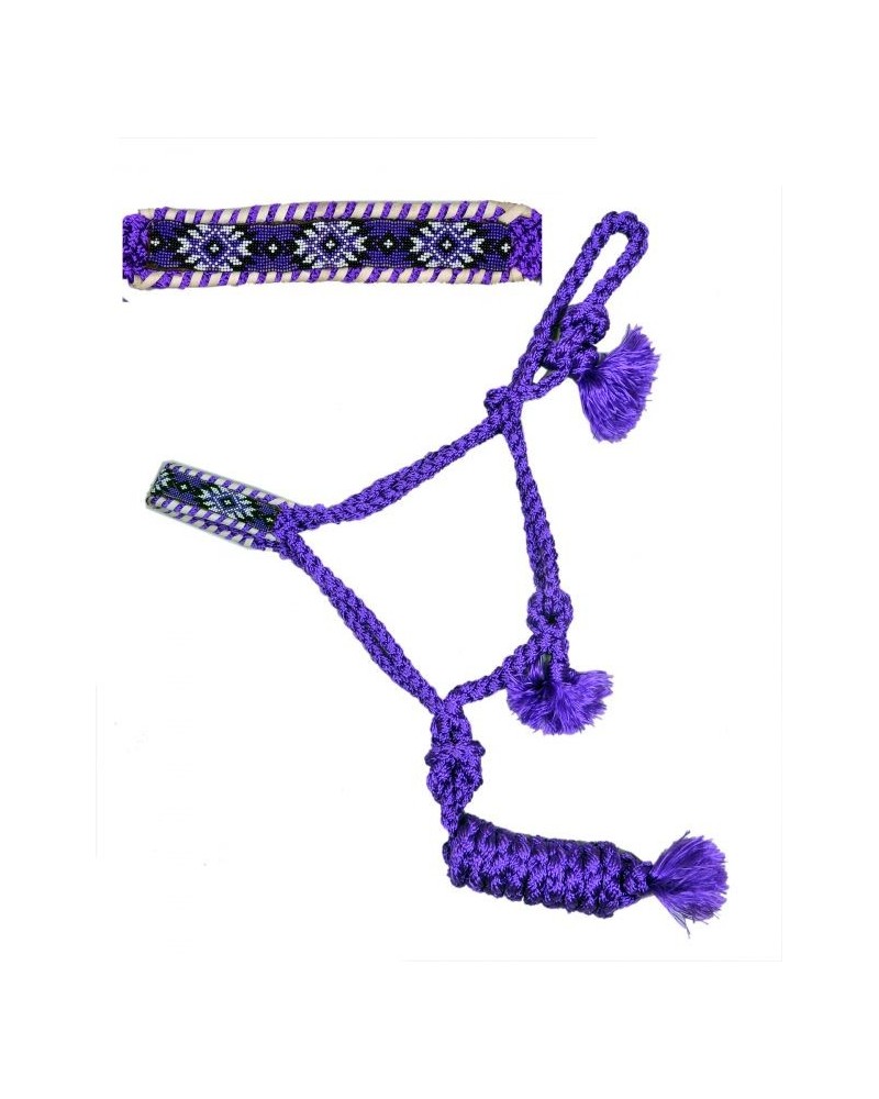 Licol Showman® en nylon tissé violet avec muserolle perlée . Ce licol de style mule est composé de nylon tissé avec un cordon amovible de 2m. Ce licol a des extrémités à pompons au point d'attache et des pompons sur la longe amovible. il est excellent pour le travail de base ou tout autre entraînement en main.