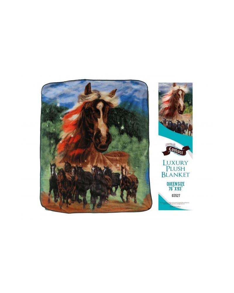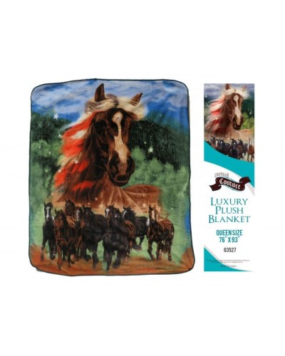 PLAID POLAIRE HORSES PRINT